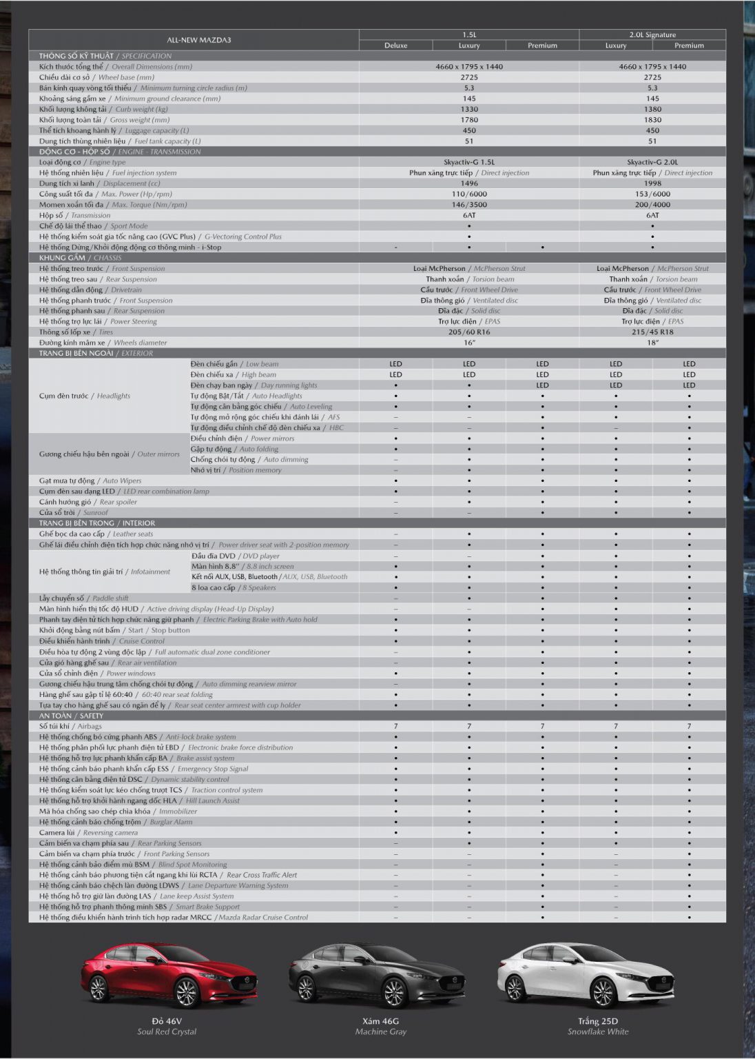 Ở phiên bản tiêu chuẩn Mazda 3 Sedan giá chỉ từ 719 triệu đồng đến 919 tăng nhẹ so với thế hệ Mazda 3 2019, phiên bản Mazda Sport giá chỉ từ 759 triệu đến 939 triệu đồng.